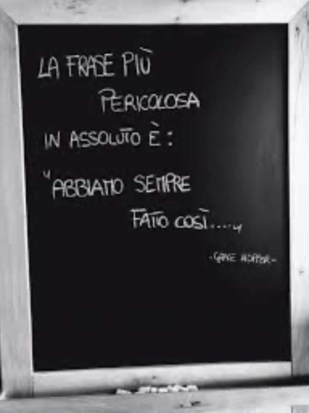 Per me queste parole rappresentano l’immobilismo, la voglia di non cambiare e l’incapacità di innovare. Elementi che per un’azienda e anche nella vita professionale e personale possono essere molto pericolose. Perché viviamo in un mondo che cambia costantemente, e noi dobbiamo cambiare con lui. Possiamo essere coerenti, é vero, ma questo non vuol dire restare immobili: se guardiamo con attenzione é raro che le situazioni, le convinzioni e le informazioni di ieri siano uguali identiche anche oggi.